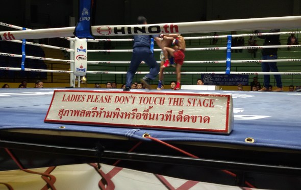 Anyone who has visited Lumpinee Boxing Stadium will have noticed the signs displayed ringside: “LADIES PLEASE DON’T TOUCH THE STAGE”.