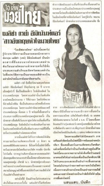 A Sense of Where you Are….a Conversation with Muay Thai Champion Melissa Ray….” – an interview by Kevin S. Cummings for Thailand Footprint (June 2013).